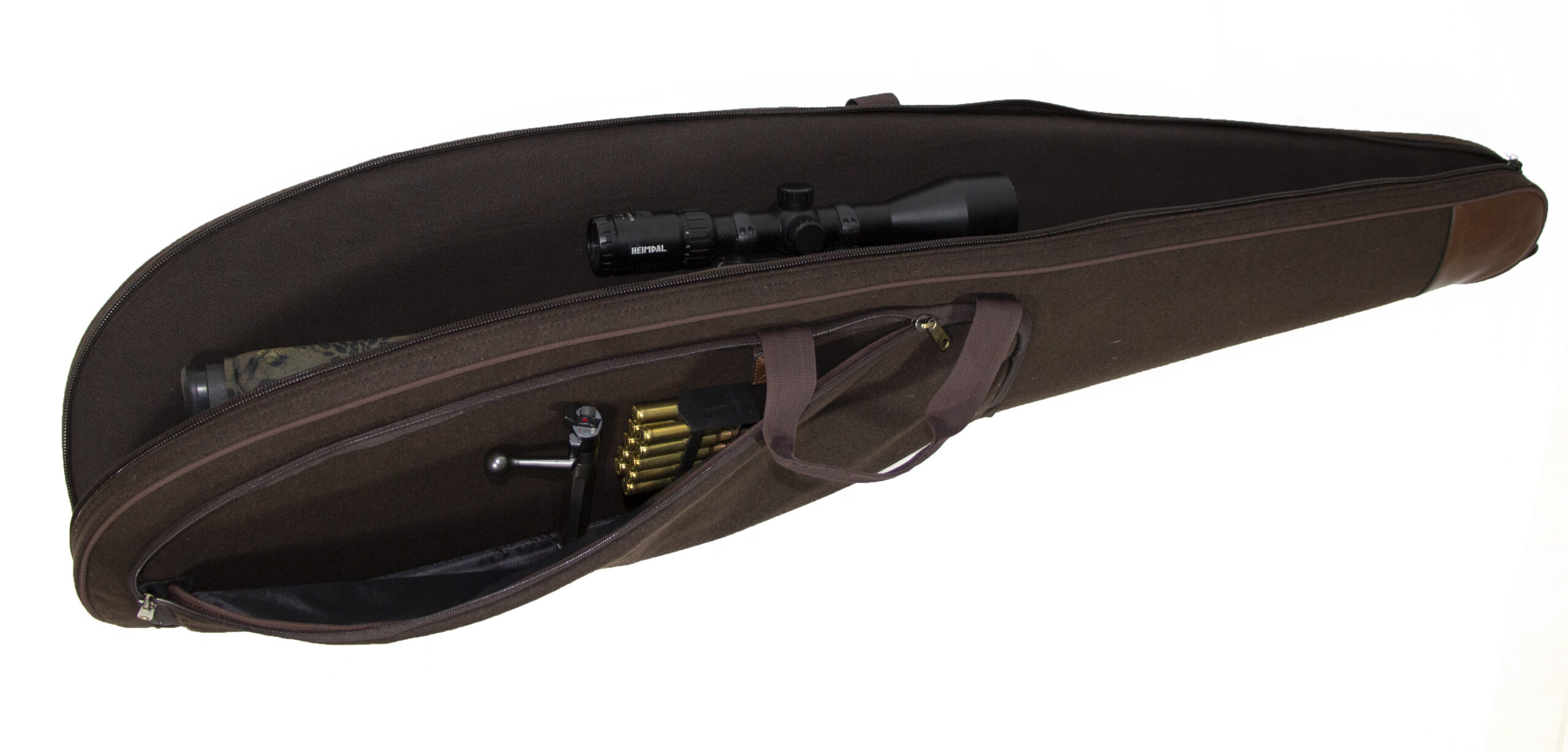 Une er et 135 cm. Langt sporty og enkelt riffeletui, Super stærke materialer, Fleecefor. Bærehåndtag og skulderrem. Ekstra længde for våben med lyddæmpere. Låsbar lynlås. Opfylder EU’s krav for våbentransport i køretøjer.